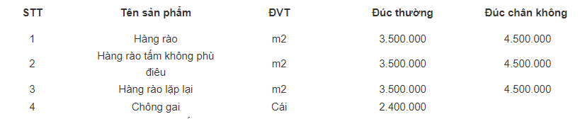Trên thị trường hiện nay bạn có thể bắt gặp rất nhiều mức giá hàng rào nhôm đúc khác nhau. Tuy nhiên, để đảm bảo chất lượng sản phẩm thì bạn nên tránh những nơi bán với mức giá quá thấp. Và việc bán giá quá cao cũng chưa hẳn đã đi cùng chất lượng cao hơn. Tốt nhất nên mua ở nơi uy tín, có mức giá hợp lý, không chênh quá nhiều với bảng báo giá hàng rào nhôm đúc chuẩn năm 2022 dưới đây: